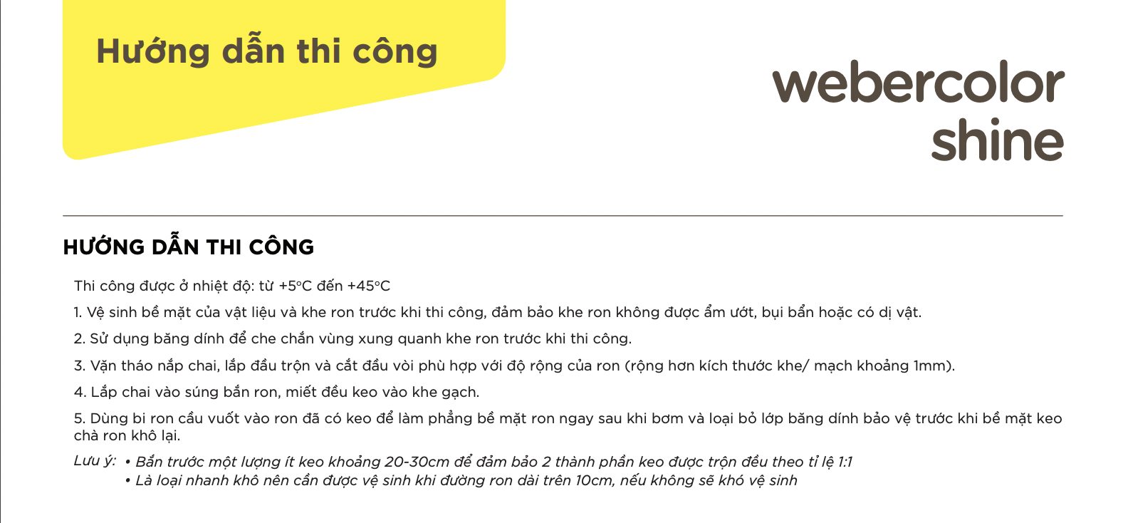 Vòi trộn xoắn ốc trộn đều 2 thành phần keo webercolor shine theo tỉ lệ 1:1, giúp keo khô đều và đảm bảo độ bám dính tốt